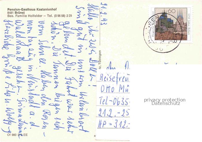 74049969 alte Postkarte Bruenst Georgenberg Pension Gasthaus Kastanienhof Restaurant Fremdenzimmer postalisch gelaufen Erhaltung siehe scans [FriedD77] KatCode: 11110009374123