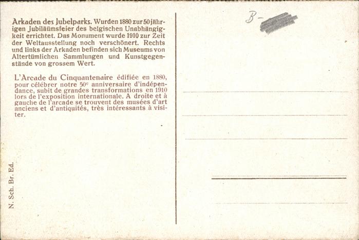 71493148 Bruessel Bruxelles Arcade du Cinquantenaire postalisch nicht gelaufen Erhaltung siehe scans KatCode: 11070021003401