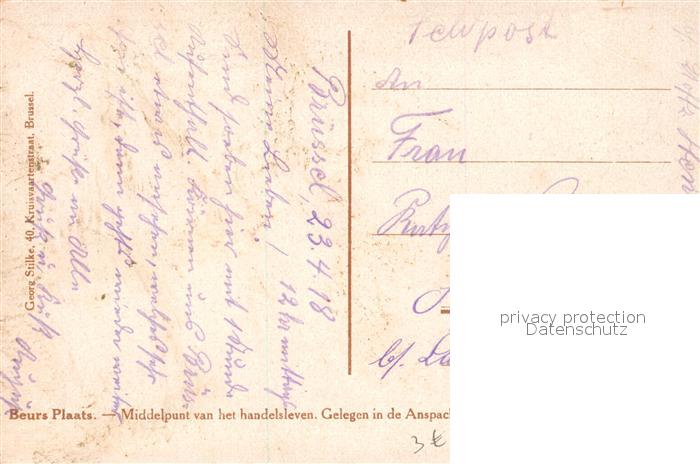 43039689 Bruessel Bruxelles Beurs Plaats Boersenplatz postalisch nicht gelaufen Feldpost Erhaltung siehe scans [FriedD77] KatCode: 11070021003401