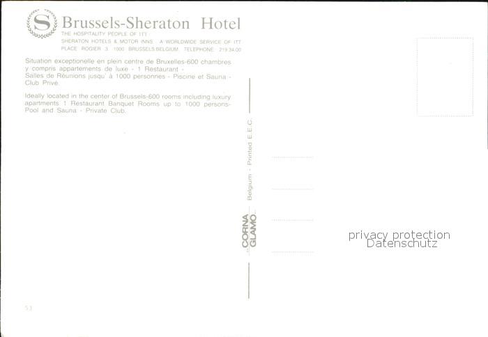 72576906 Bruessel Bruxelles Brussels Sheraton Hotel postalisch nicht gelaufen Erhaltung siehe scans [LiesaD40] KatCode: 11070021003401