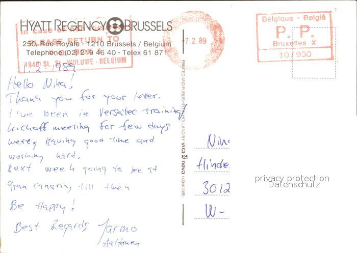 72011968 carte postale Bruessel Bruxelles Hyatt Regency Brussels postalisch gelaufen Erhaltung siehe scans KatCode: 11070021003401