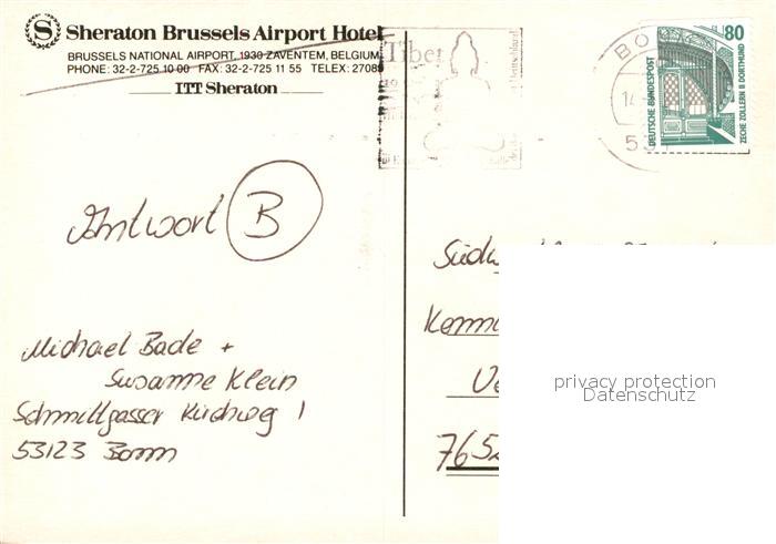 73480518 carte postale Bruessel Bruxelles Sheraton Brussels Airport Hotel postalisch gelaufen Erhaltung siehe scans [KathaD81] KatCode: 11070021003401