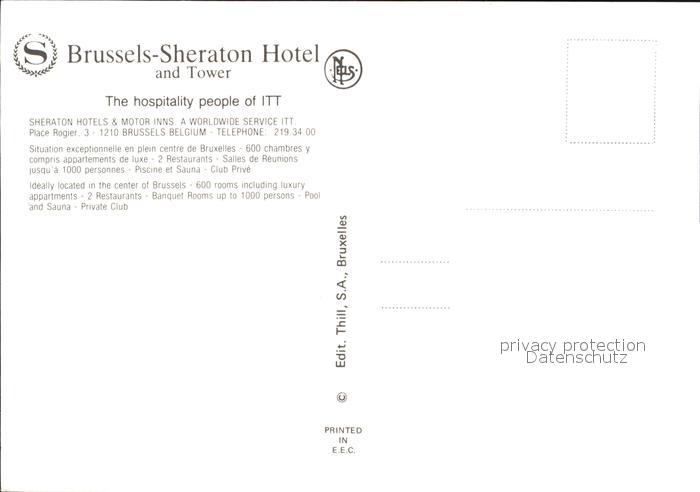 72567688 Bruessel Bruxelles Sheraton Hotel postalisch nicht gelaufen Erhaltung siehe scans [KathaD79] KatCode: 11070021003401