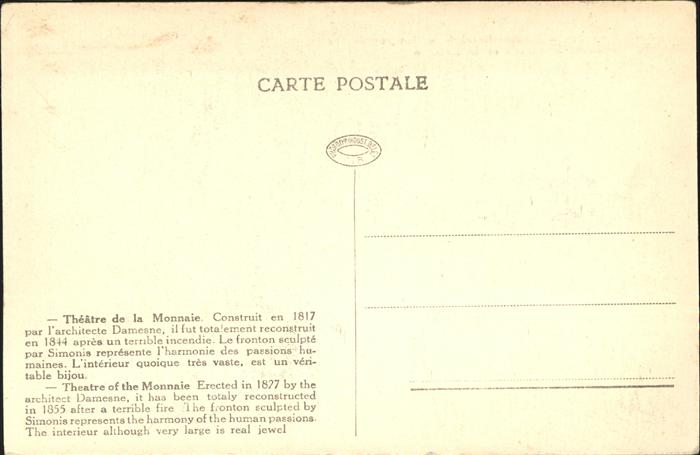 71493095 Bruessel Bruxelles Theatre Royal de la Monnaie postalisch nicht gelaufen Erhaltung siehe scans KatCode: 11070021003401