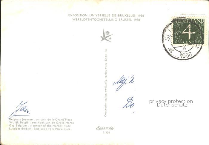 72287772 carte postale Bruessel Bruxelles Weltausstellung 1958 postalisch gelaufen Erhaltung siehe scans KatCode: 11070021003401