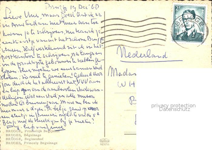 72298922 carte postale Bruges BRUGGE Belgie Beginenhof postalisch gelaufen Erhaltung siehe scans KatCode: 11070031000080