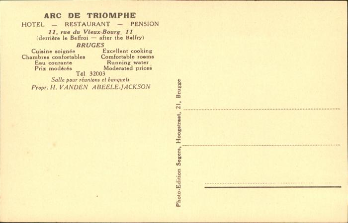 10929011 Bruges BRUGGE Belgie Bruges Arc de Triomphe Hotel Restaurant Pension postalisch nicht gelaufen Alte Ansichtskarte Postkarte Katcode 11070031000080