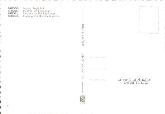 72449196 Bruges BRUGGE Belgie Eingang des Beguinenklosters postalisch nicht gelaufen Erhaltung siehe scans KatCode: 11070031000080