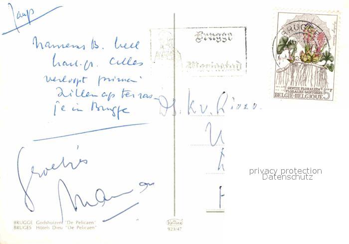 72904554 carte postale Bruges BRUGGE Belgie Hotels Dieu De Pelicaen postalisch gelaufen Erhaltung siehe scans [FriedD77] KatCode: 11070031000080