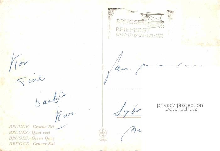 72860072 carte postale Bruges BRUGGE Belgie Quai vert postalisch gelaufen Erhaltung siehe scans [FriedD77] KatCode: 11070031000080