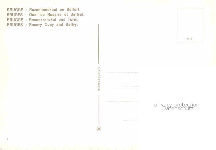 72754865 Bruges BRUGGE Belgie Rosenkranzkai Turm Rozenhoedkaai en Belfort postalisch nicht gelaufen Erhaltung siehe scans [FriedD77] KatCode: 11070031000080