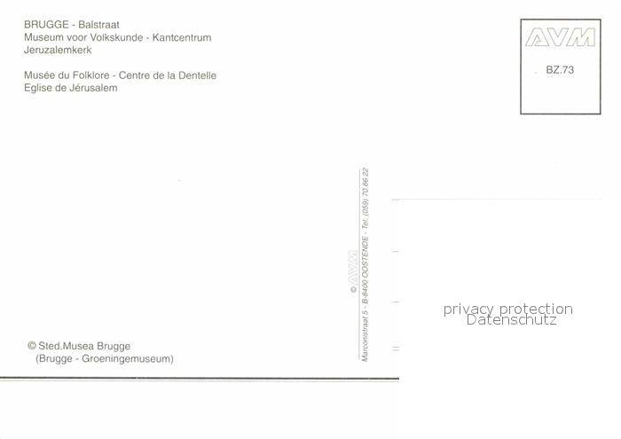 72890474 BRUGGE Bruges Belgie Balstraat Museum voor Volkskunde Kantcentrum Jeruzalemkerk postalisch nicht gelaufen Erhaltung siehe scans [WerneD78] KatCode: 11070031000079