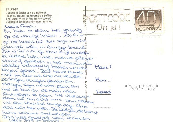 72223656 carte postale BRUGGE Bruges Belgie Burgplatz postalisch gelaufen Erhaltung siehe scans KatCode: 11070031000079