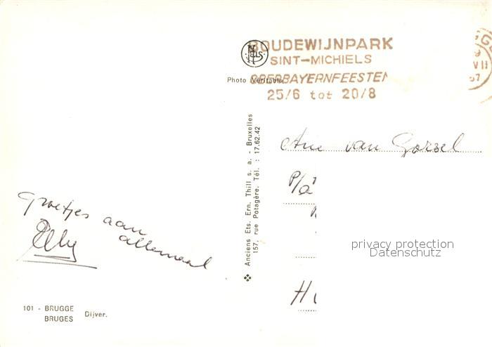 72936478 carte postale BRUGGE Bruges Belgie Dijver Kanal postalisch gelaufen Erhaltung siehe scans [FriedD77] KatCode: 11070031000079