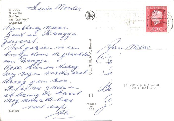 72580932 carte postale BRUGGE Bruges Belgie Gruener Kais postalisch gelaufen Erhaltung siehe scans [LiesaD40] KatCode: 11070031000079