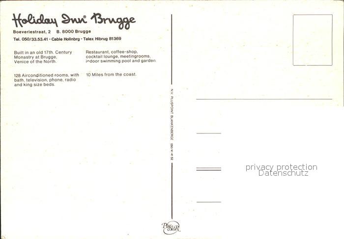 72290940 BRUGGE Bruges Belgie Holiday Inn postalisch nicht gelaufen Erhaltung siehe scans KatCode: 11070031000079