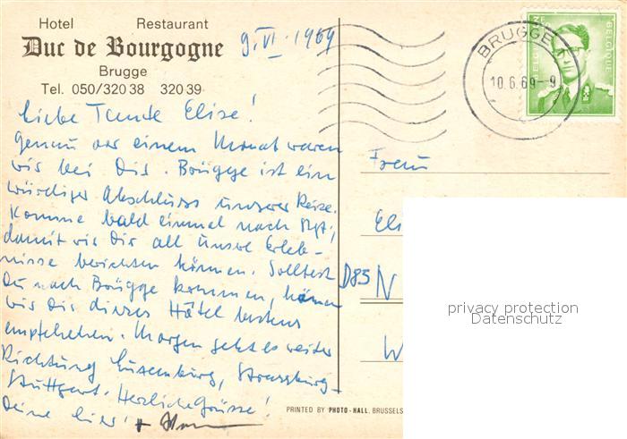73340158 carte postale BRUGGE Bruges Belgie Hotel Restaurant Duc de Bourgogne postalisch gelaufen Erhaltung siehe scans [LiesaD40] KatCode: 11070031000079