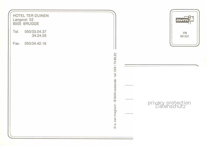 72661469 BRUGGE Bruges Belgie Hotel Ter Duinen postalisch nicht gelaufen Erhaltung siehe scans [AndreD76] KatCode: 11070031000079