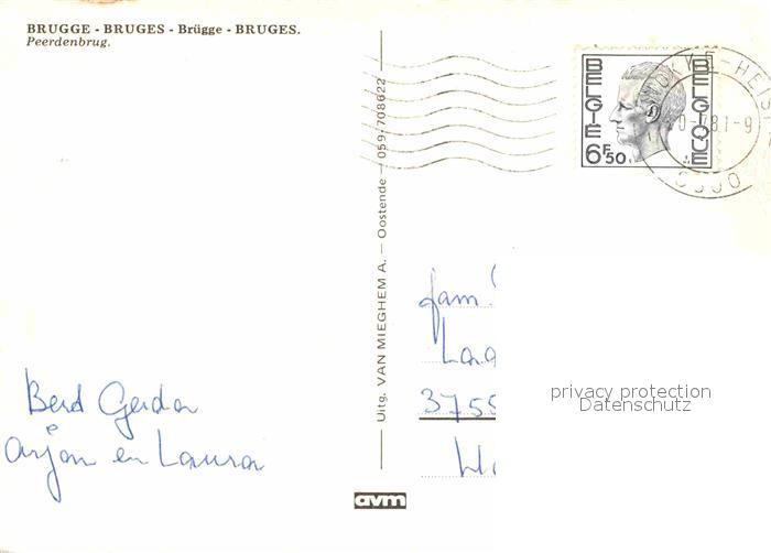 72790912 carte postale BRUGGE Bruges Belgie Peerdenbrug postalisch gelaufen Erhaltung siehe scans [FriedD77] KatCode: 11070031000079