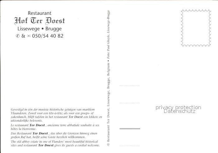 72290920 BRUGGE Bruges Belgie Restaurant Hof der Doest Speiseraum mit Kamin postalisch nicht gelaufen Erhaltung siehe scans KatCode: 11070031000079