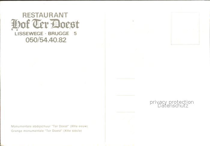 72249271 BRUGGE Bruges Belgie Restaurant Hof Ter Doest postalisch nicht gelaufen Erhaltung siehe scans KatCode: 11070031000079