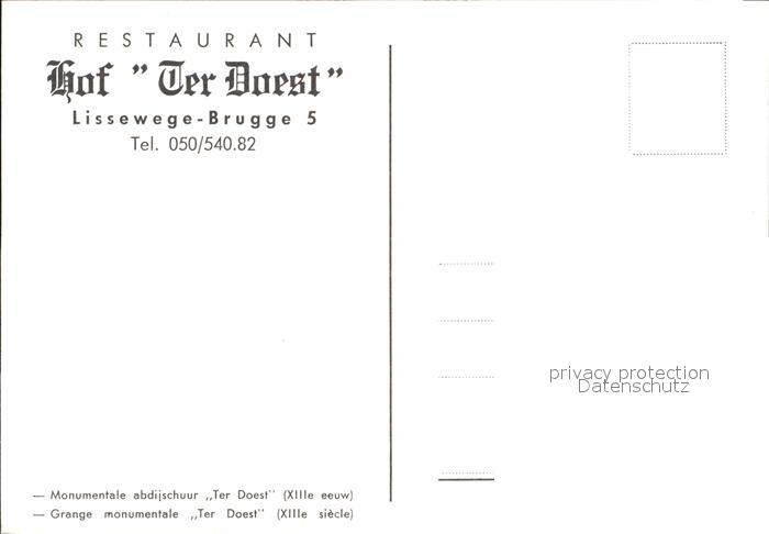 72416655 BRUGGE Bruges Belgie Restaurant Hof Ter Doest postalisch nicht gelaufen Erhaltung siehe scans KatCode: 11070031000079