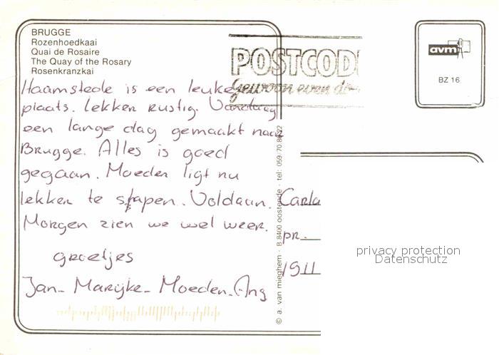 72912153 BRUGGE Bruges Belgie Rozenhoedkaai Rosenkranzkai postalisch nicht gelaufen Erhaltung siehe scans [LiesaD40] KatCode: 11070031000079