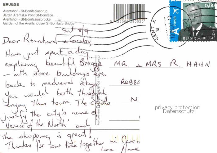 72898303 carte postale BRUGGE Bruges Belgie Sankt Bonifaciusburg und Bruecke postalisch gelaufen Erhaltung siehe scans [AndreD76] KatCode: 11070031000079
