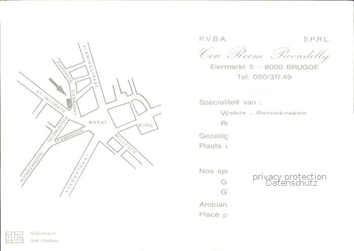 71845000 BRUGGE Bruges Belgie Tearoom Piccadilly mit Lageplan postalisch nicht gelaufen Erhaltung siehe scans KatCode: 11070031000079