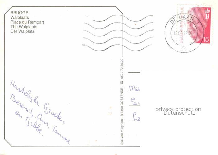 72888551 carte postale BRUGGE Bruges Belgie Walplaats postalisch gelaufen Erhaltung siehe scans [WerneD78] KatCode: 11070031000079
