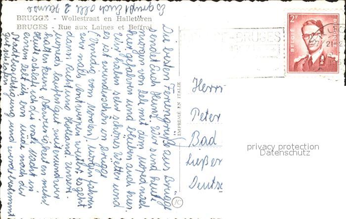 72319649 carte postale BRUGGE Bruges Belgie Wollestraat en Halletoren postalisch gelaufen Erhaltung siehe scans KatCode: 11070031000079