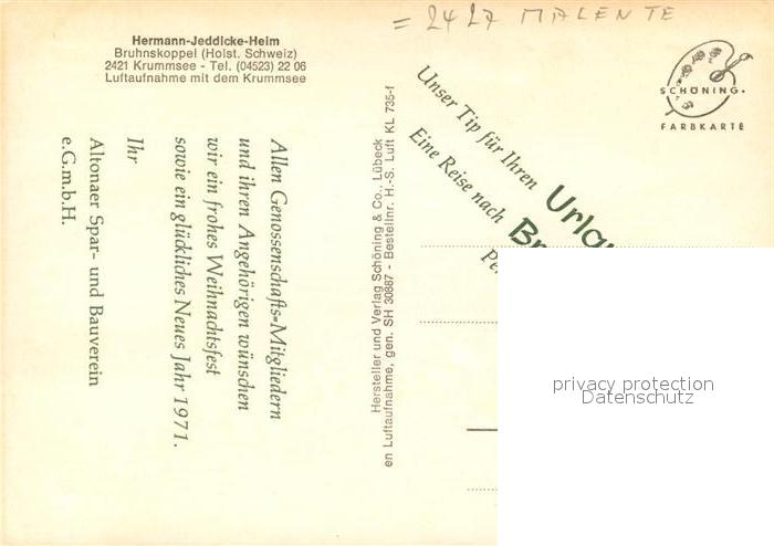73042378 Bruhnskoppel Hermann Jeddicke Heim mit Krummsee Fliegeraufnahme postalisch nicht gelaufen Erhaltung siehe scans [FriedD77] KatCode: 11110001057008