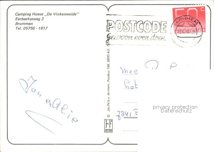 old postcard Brummen Camping Hoeve De Vinkenweide postalisch gelaufen Erhaltung siehe scans
