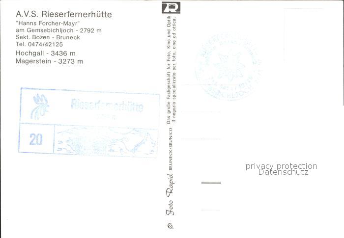 Bruneck A.V.S. Rieserfernerhuette postalisch nicht gelaufen Erhaltung siehe scans