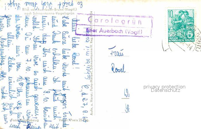 72728856 alte Postkarte Brunn Auerbach Panorama Blick nach Schnarrtanne Vogelsgruen postalisch gelaufen Erhaltung siehe scans [FriedD77] KatCode: 11110014178030