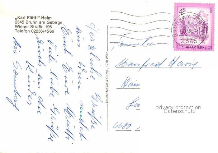 12637435 alte Postkarte Brunn Gebirge Fliegeraufnahme Karl Floettl Heim postalisch gelaufen Erhaltung siehe scans [LiesaD40] KatCode: 11390127031704