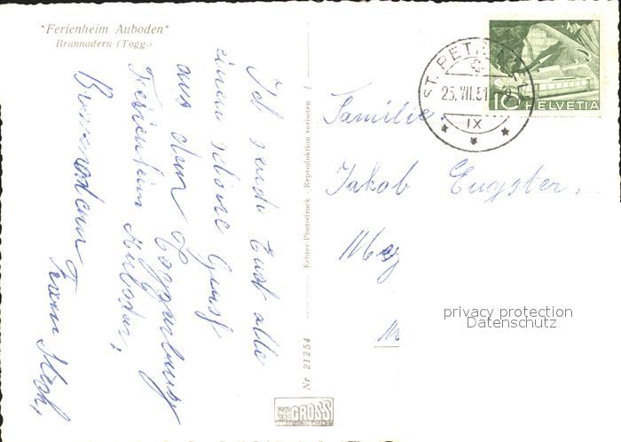 11646269 alte Postkarte Brunnadern SG Ferienheim Auboden postalisch gelaufen KatCode: 11470190585772
