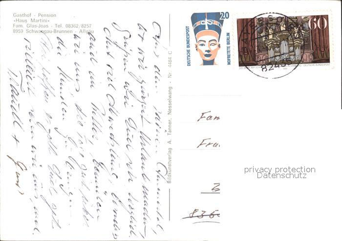 72186574 alte Postkarte Brunnen Schwangau Haus Martini Forggensee Tegelbergbahn Saeuling Fuessen Schloss Hohenschwangau postalisch gelaufen Erhaltung siehe scans KatCode: 11110009777169
