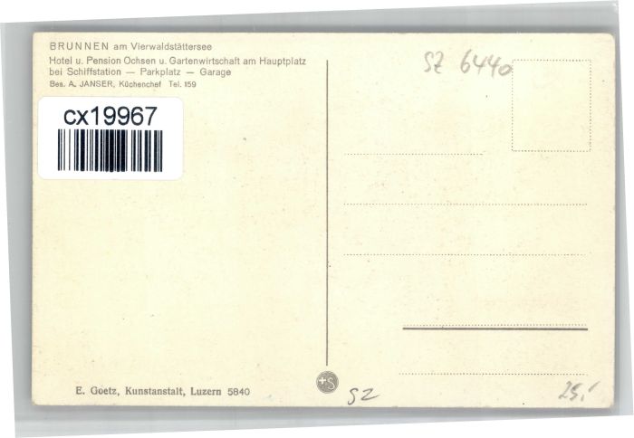 10738110 Brunnen SZ Hotel Pension Ochsen postalisch nicht gelaufen KatCode: 11470170500500