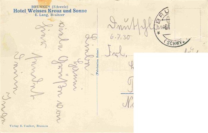 13972370 alte Postkarte Brunnen SZ Hotel Weisses Kreuz und Sonne postalisch gelaufen Erhaltung siehe scans [WerneD78] KatCode: 11470170500500