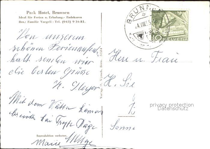 11853581 alte Postkarte Brunnen SZ Park Hotel postalisch gelaufen Erhaltung siehe scans KatCode: 11470170500500