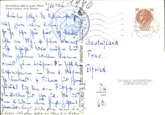 old postcard Brunnenburg Castel Fontana Panorama postalisch gelaufen Erhaltung siehe scans