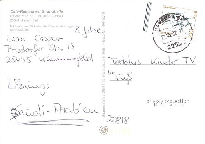 72379281 alte Postkarte Brunsbuettel Cafe Restaurant Strandhalle postalisch gelaufen Erhaltung siehe scans KatCode: 11110001051011