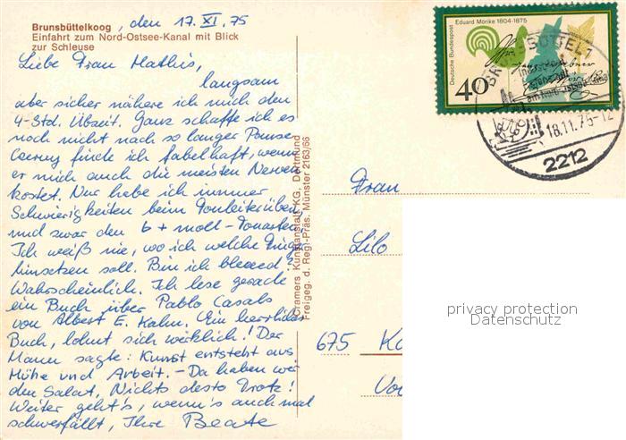 72853669 alte Postkarte Brunsbuettelkoog Fliegeraufnahme Nord-Ostesee-Kanal Schleuse postalisch gelaufen Erhaltung siehe scans [AndreD76] KatCode: 11110001051011