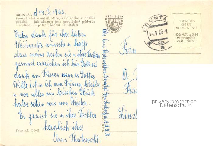 73740529 Bruntal Freudenthal Czechia Severni cast namesti Miru zalozeneho v dnesni podobe postalisch gelaufen Erhaltung siehe scans [WerneD78] old postcard Wern Katcode 11520
