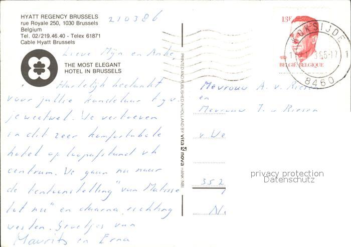 72429741 carte postale Brussels Hyatt Regency Brussels postalisch gelaufen Erhaltung siehe scans KatCode: 11070021003402
