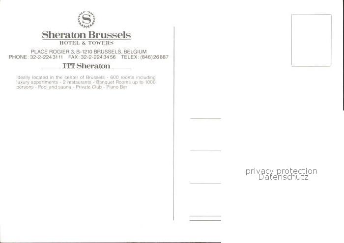 71820599 Brussels Sheraton Hotel postalisch nicht gelaufen Erhaltung siehe scans KatCode: 11070021003402