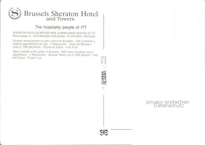 71845426 Brussels Sheraton Hotel and Towers postalisch nicht gelaufen Erhaltung siehe scans KatCode: 11070021003402