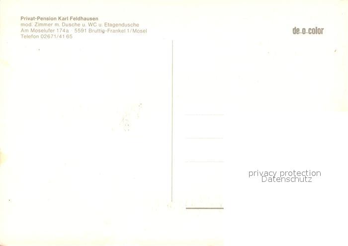 73643417 Bruttig-Fankel Panorama Pension Feldhausen Terrasse Gaststube postalisch nicht gelaufen Erhaltung siehe scans [WerneD78] KatCode: 11110007135017