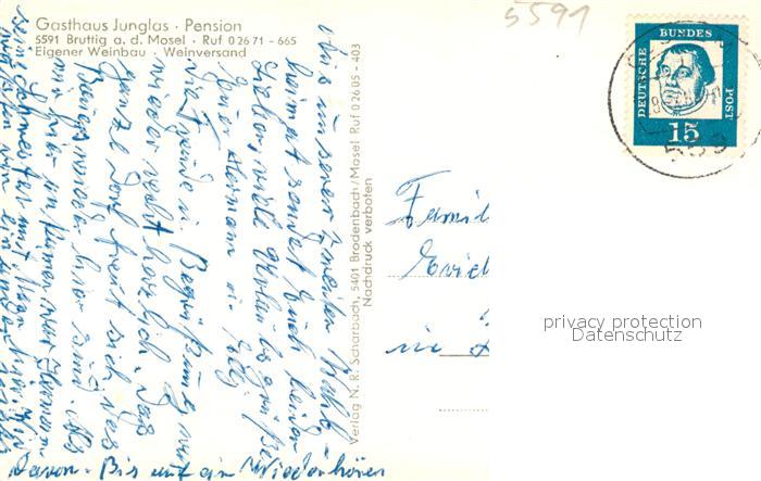 43350585 alte Postkarte Bruttig Mosel Gasthaus Pension Junglas Gastraum postalisch gelaufen Erhaltung siehe scans [FriedD77] KatCode: 11110007135017